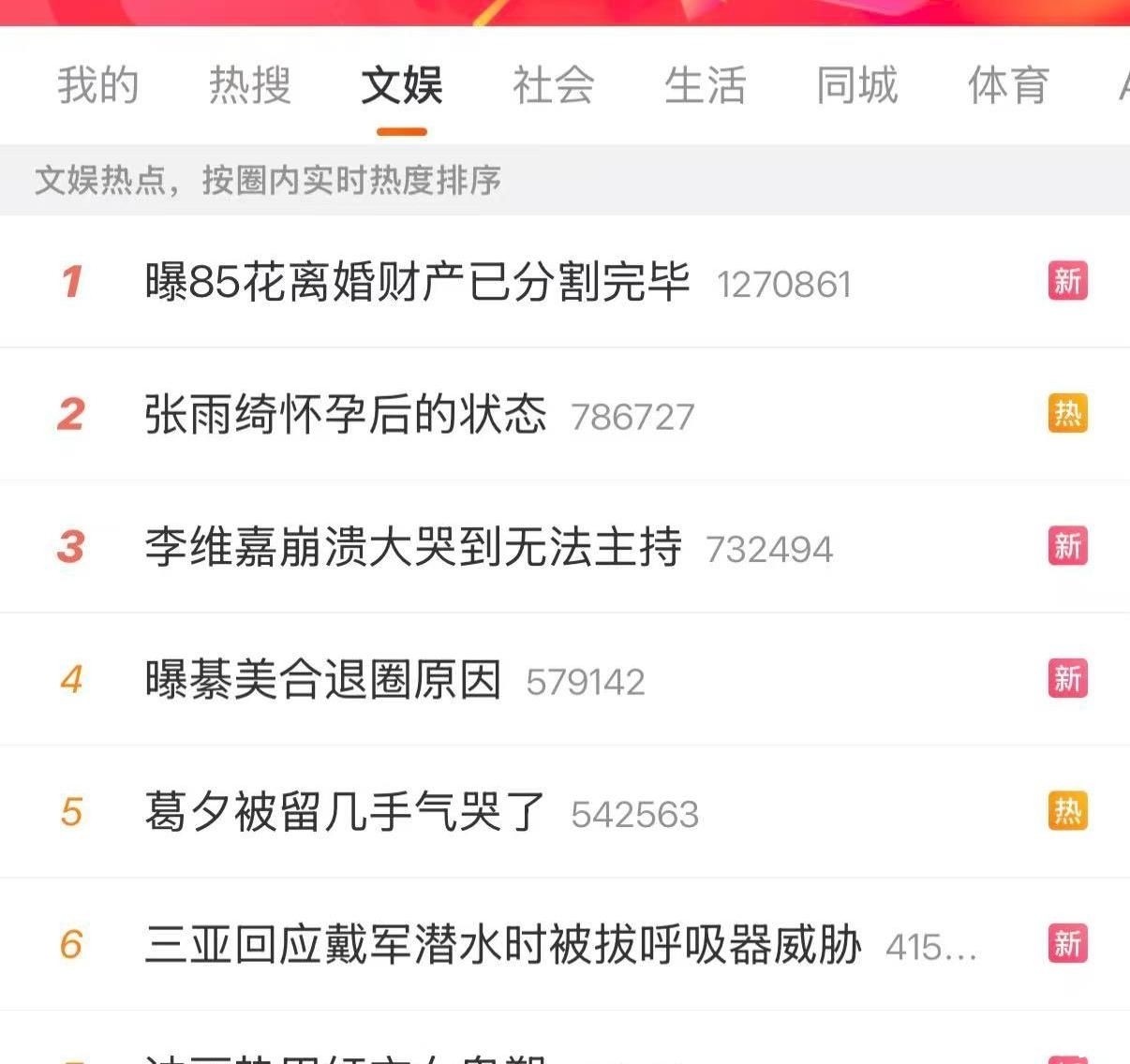 谁料3月20日,一条新热搜猝不及防冲上榜单:“85花离婚财产分割完毕”,措辞之明确、信息之具体,瞬间点燃全网猜测引擎。